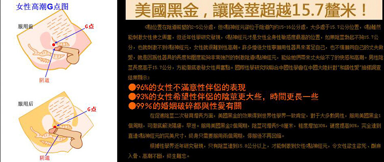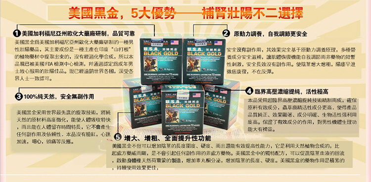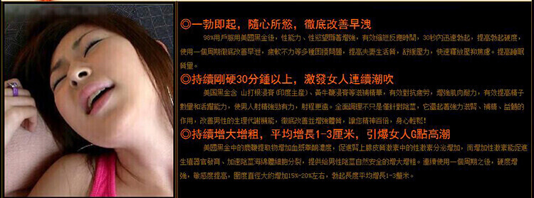本藥吧為什麼會售賣美國黑金?因為目前使用美國黑金客人對美國黑金評價最接近日本藤素,美國黑金恰巧就是美國加利福尼亞州歐化大藥廠研製出來和日本藤素爭奪男性市場的壹款產品,但是美國黑金 日本藤素不同的地方在於,美國黑金效果側重的是對ED勃起功能障礙的針對性治療,日本藤素則更加側重於治療PE早洩,兩者出發點不用,終點壹致,在美國黑金上市以來,美國黑金收穫的評價也是數不勝數,ptt上分享美國黑金的po文到處都是,美國黑金在莊嚴藥市場中收穫了超過壹百萬的粉絲。美國黑金已被美國FDA檢測中心檢測,並通過認定為成年男士放心服用的壯陽佳品。現已經遠銷世界各國,深受各界人士壹致認可。